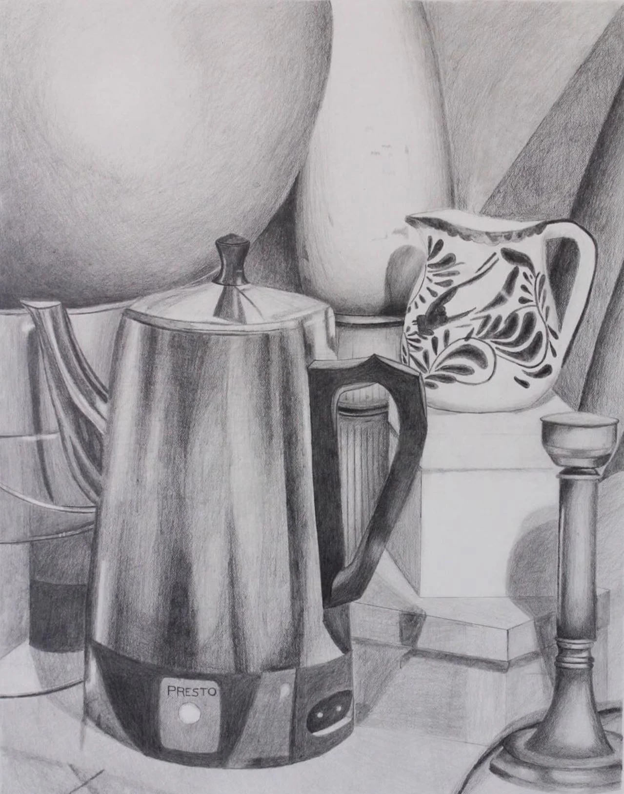 My first attempt at using watercolor to create a piece that represents real items. Learning how to utilize shading to create depth in each of the shapes and throughout the piece. Maintaining a consistent light source was crucial to the piece.